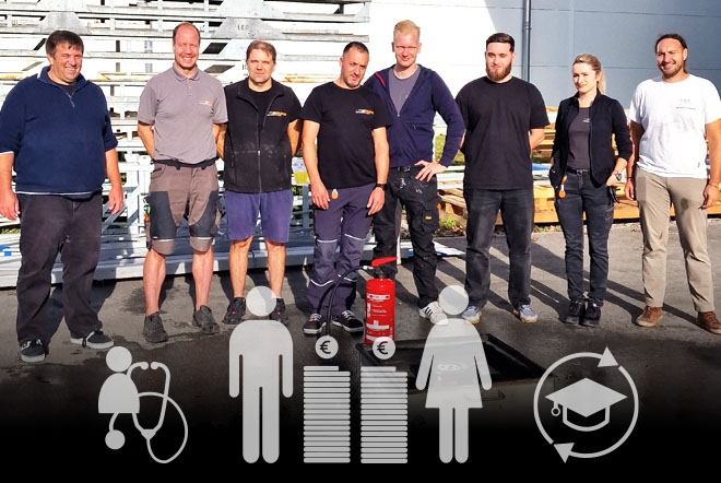 Eine leistungsgerechte und gleichberechtigte Bezahlung sind für uns selbstverständlich. Ebenso legen wir großen Wert auf die Gesundheitsvorsorge durch unseren Betriebsarzt und die Sicherheit am Arbeitsplatz. Welche aus einer Kombination aus regelmäßigen Schulungen, klaren Sicherheitsrichtlinien und modernen Schutzmaßnahmen besteht.